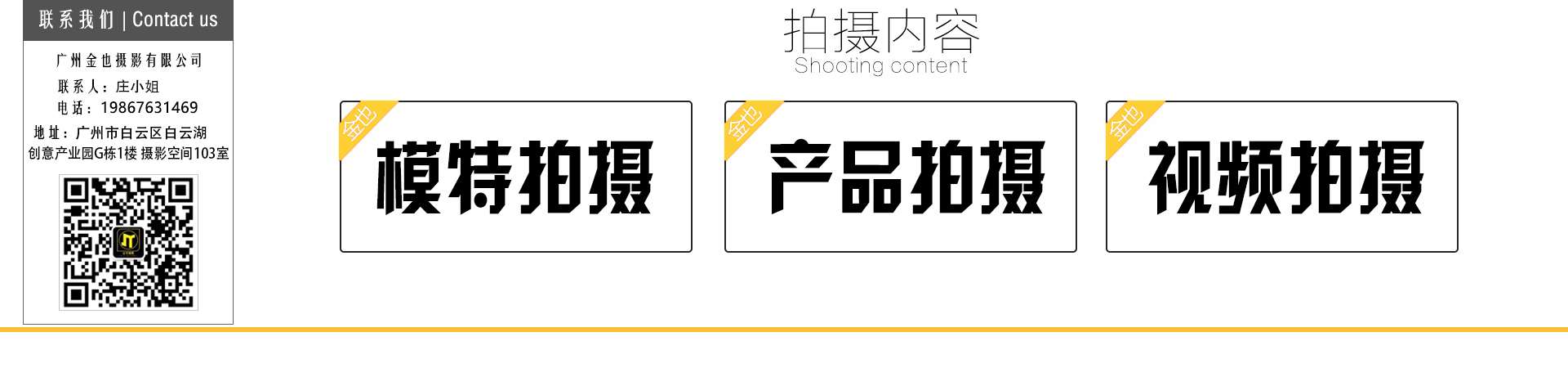 聯系人:莊小姐 電話:19867631469(微信) 地址: =廣州市白云區白云湖創意產業園G棟1樓 攝影空間103室